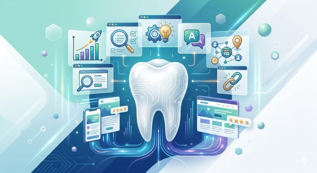 現在多數病人要找牙醫,已經不再只是問朋友或看路邊招牌,而是直接拿起手機搜尋「區名+牙醫」、「推薦牙醫」、「植牙價格」。如果你的診所在搜尋結果中找不到,對這些人來說,就等於不存在。這就是為什麼「牙醫診所…